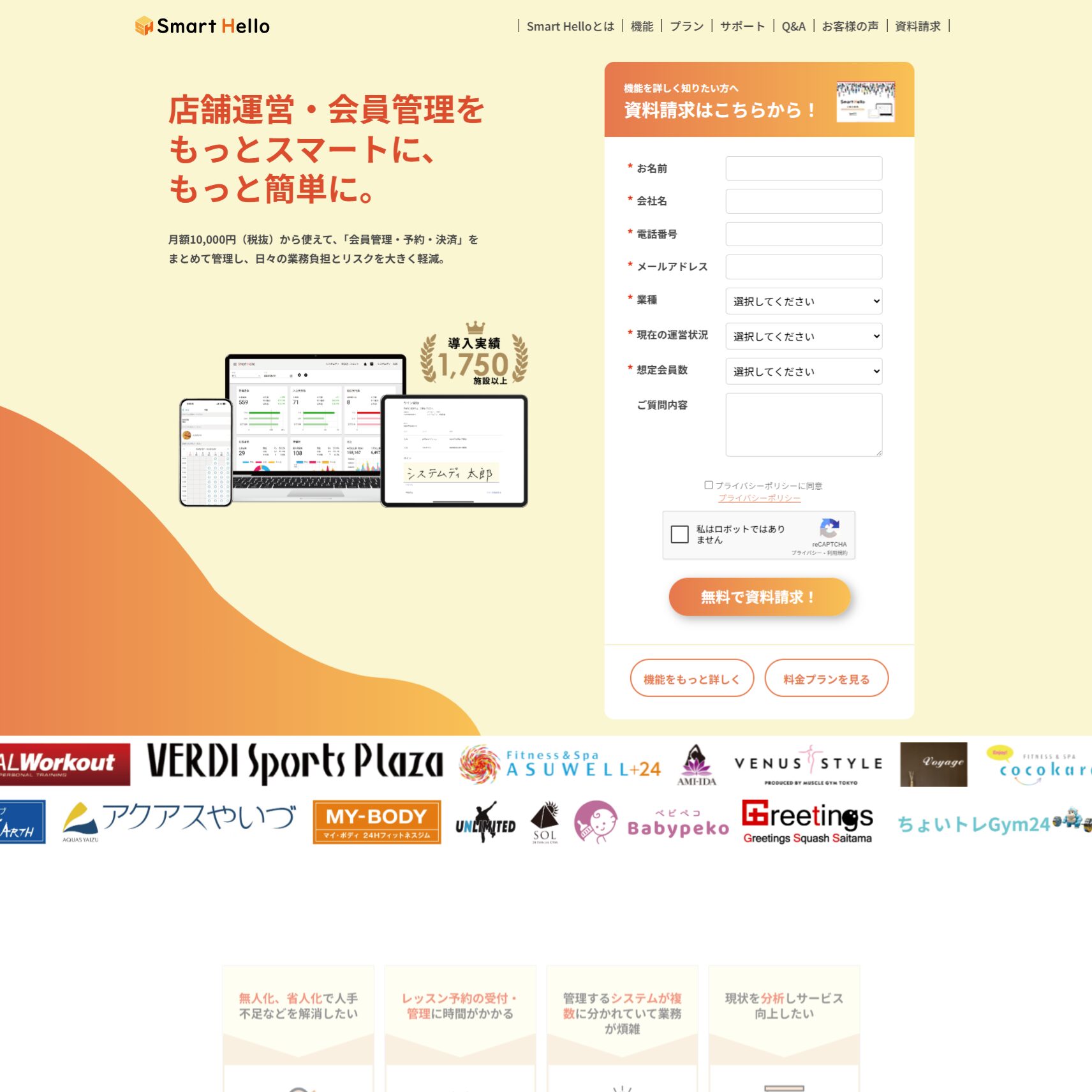 Smart Hello(スマートハロー)は長年にわたり1,750施設以上に導入した実績のある、使いやすさを重視した高品質・低価格なクラウド型管理システムです。定額制でコストパフォーマンスのよさも魅力です。